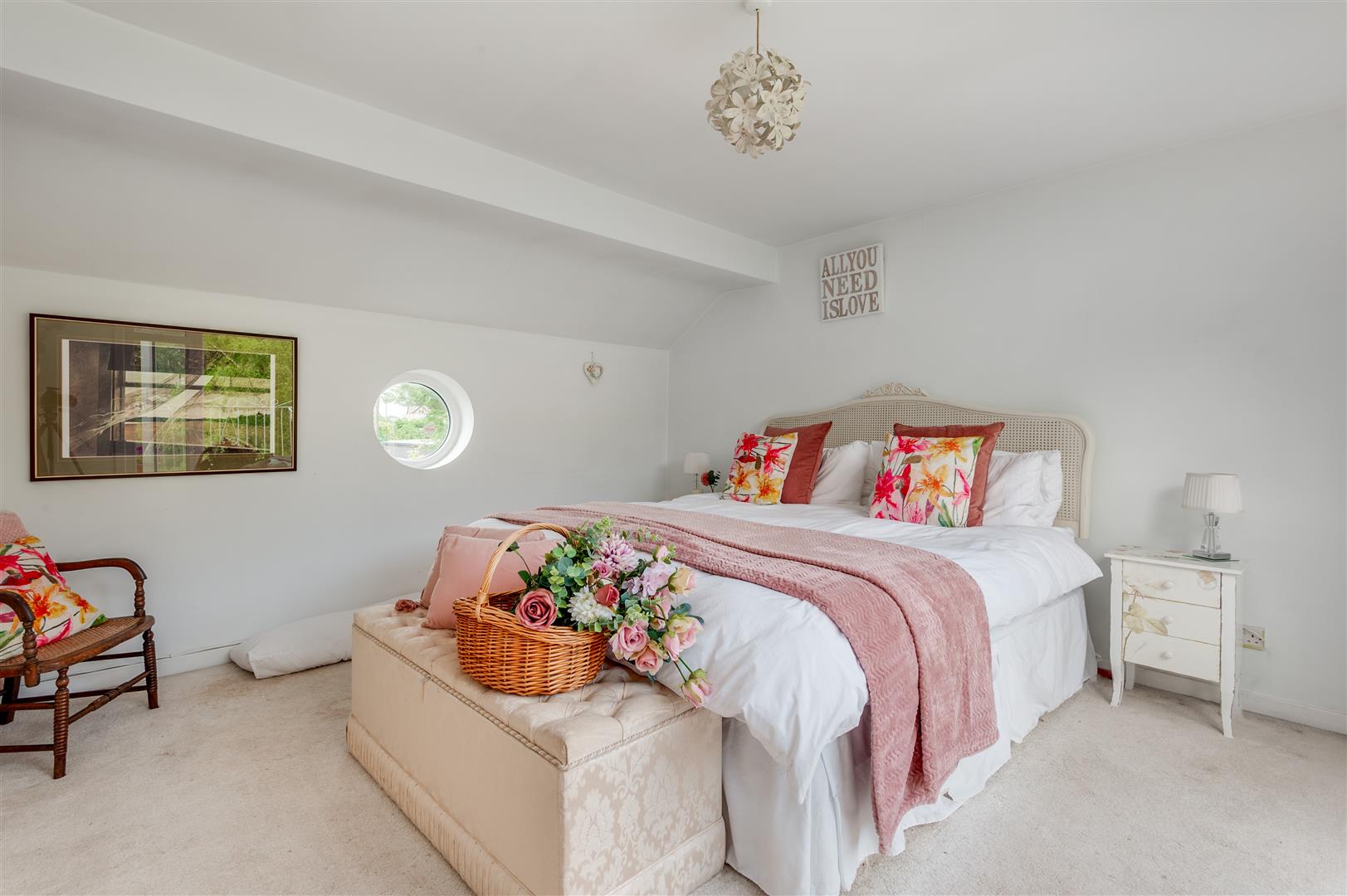 At the heart of the home is a bespoke country-style kitchen, fitted with solid oak cabinetry, granite worktops, and a range cooker. It’s a space designed for cooking and conversation, with a cosy breakfast area that looks out onto the garden. For more formal occasions, the separate dining room offers a lovely view over the front lawn.