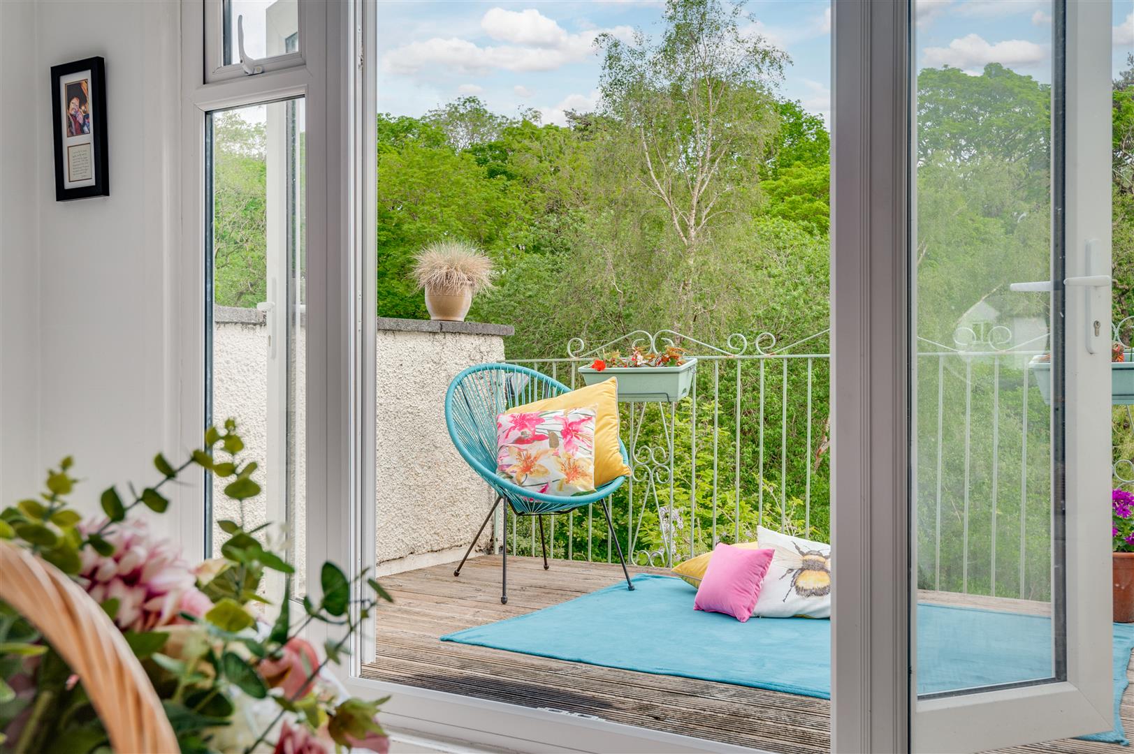 Upstairs, the principal bedroom is a real highlight. French doors open onto a private balcony overlooking the mature rear gardens and incredible wooded view. This is the perfect place to enjoy a quiet coffee in the morning sun. This floor also includes a four-piece family bathroom and a separate large walk-in wardrobe.